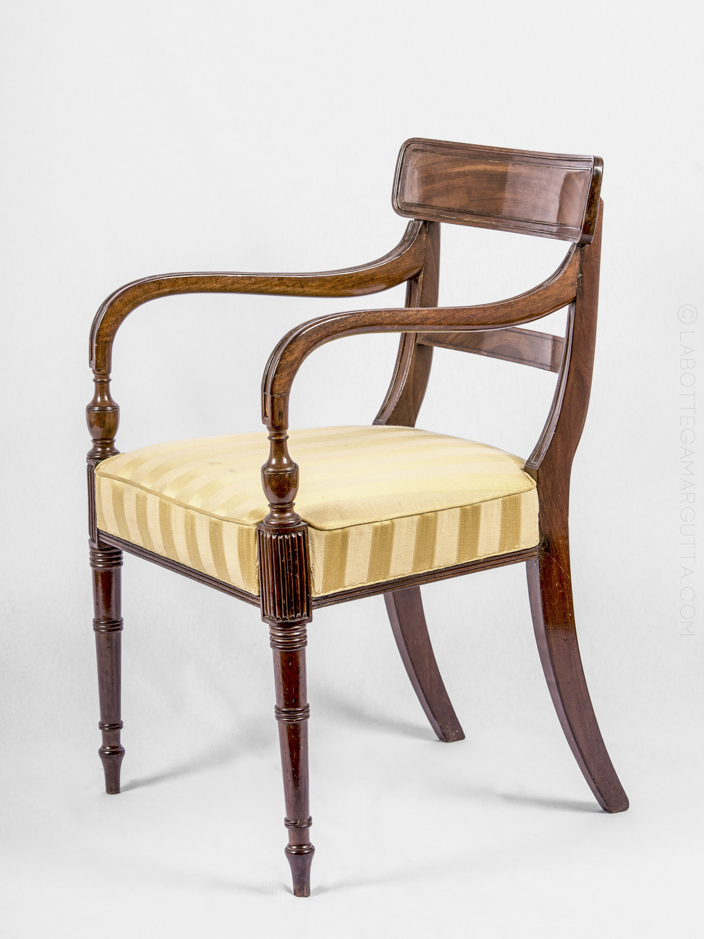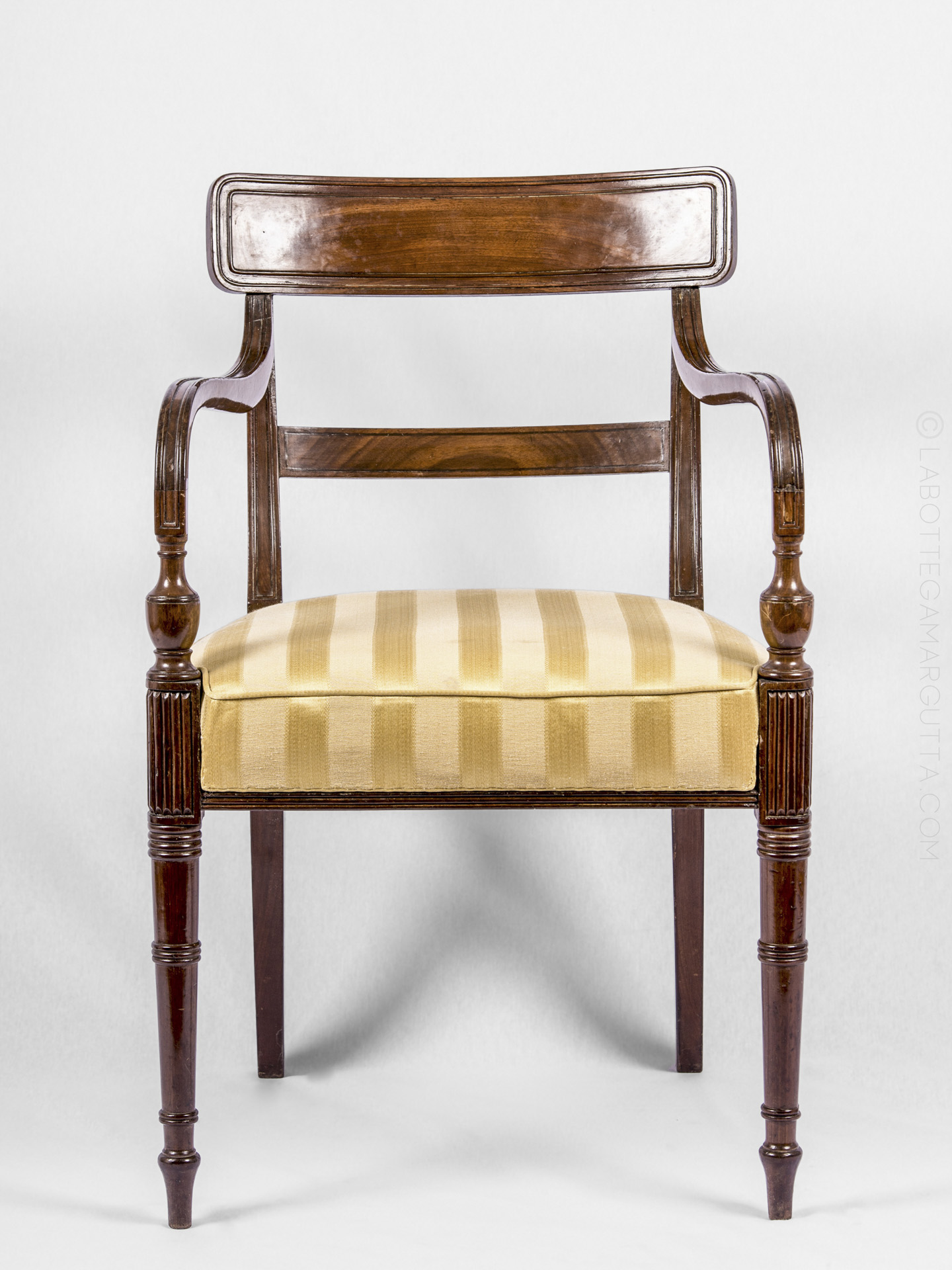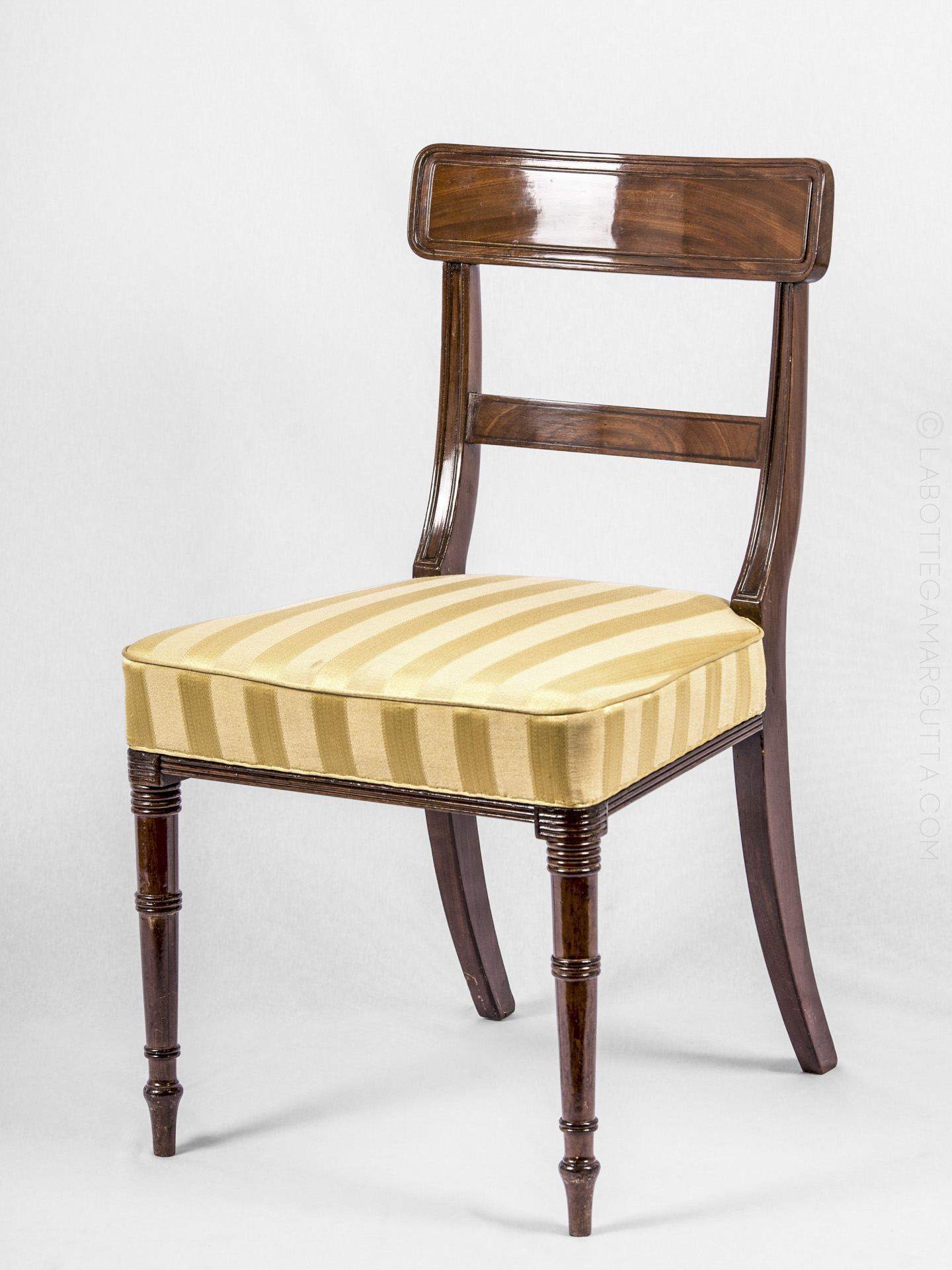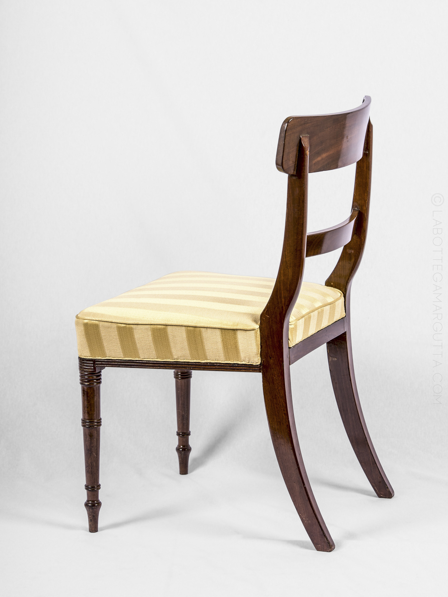 Set di sette sedie più una sedia capotavola in piuma di mogano. Inghilterra, epoca Giorgio III, 1760 circa