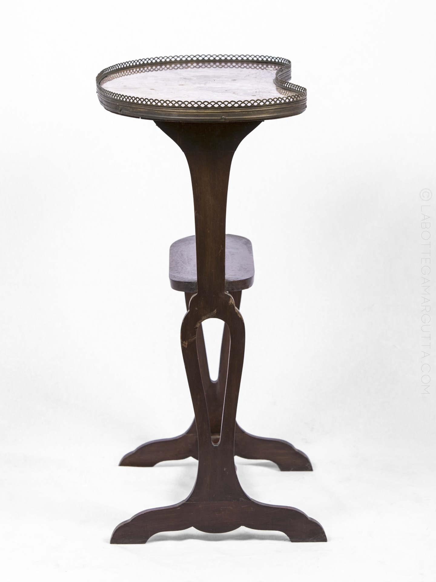 Tavolino a fagiolo in mogano, con piano di marmo e ripiano sottostante. Francia fine ‘800