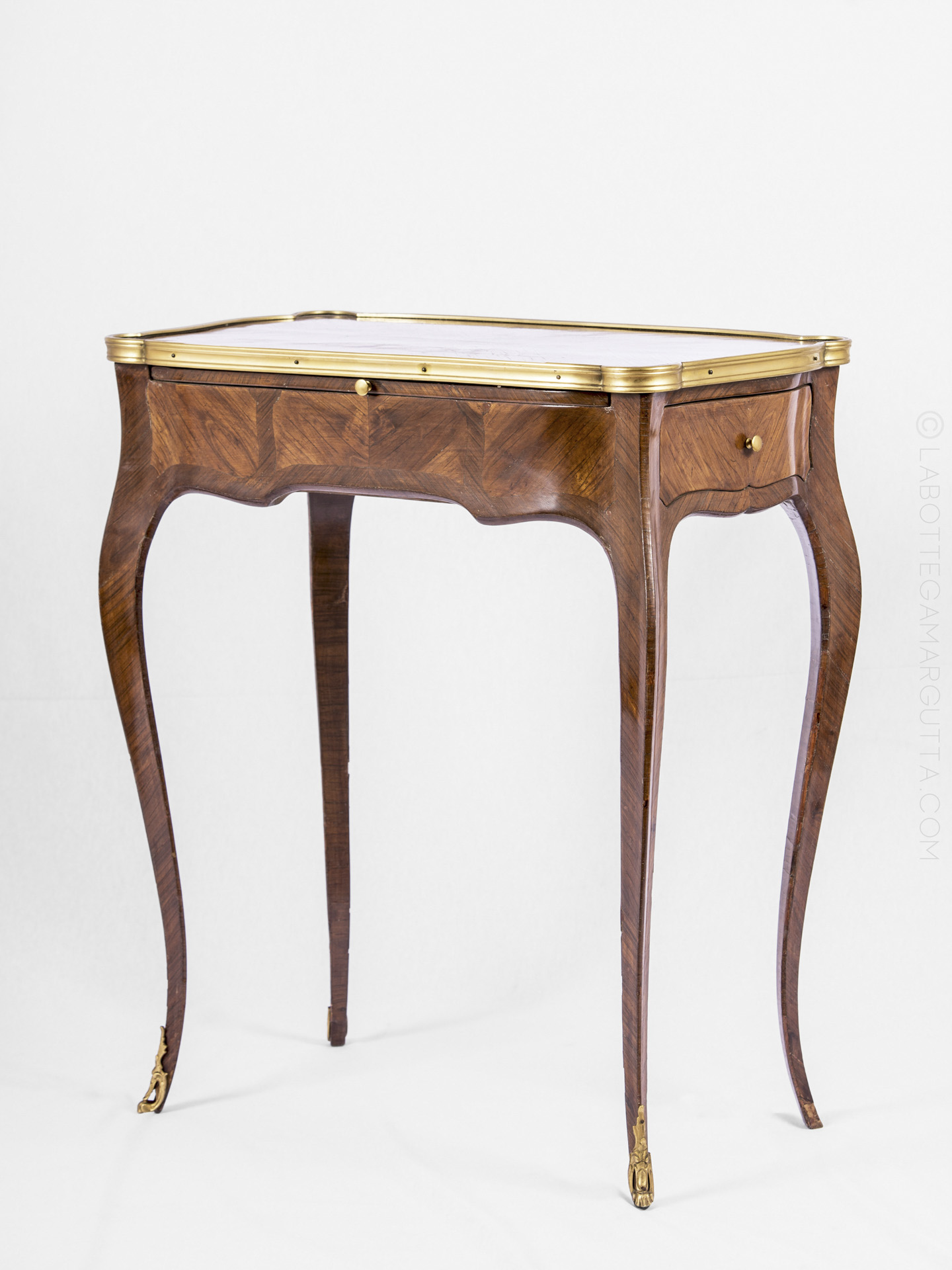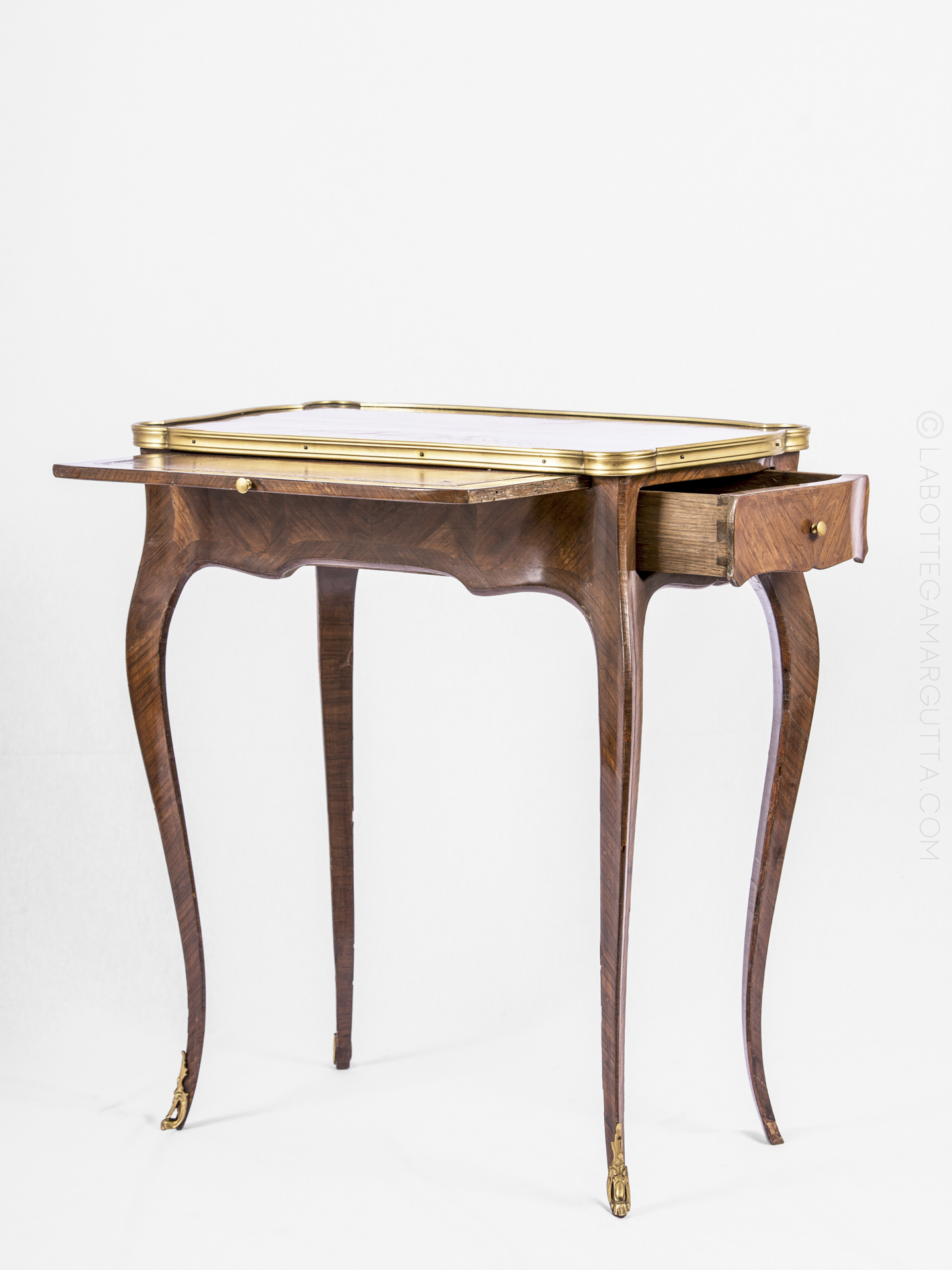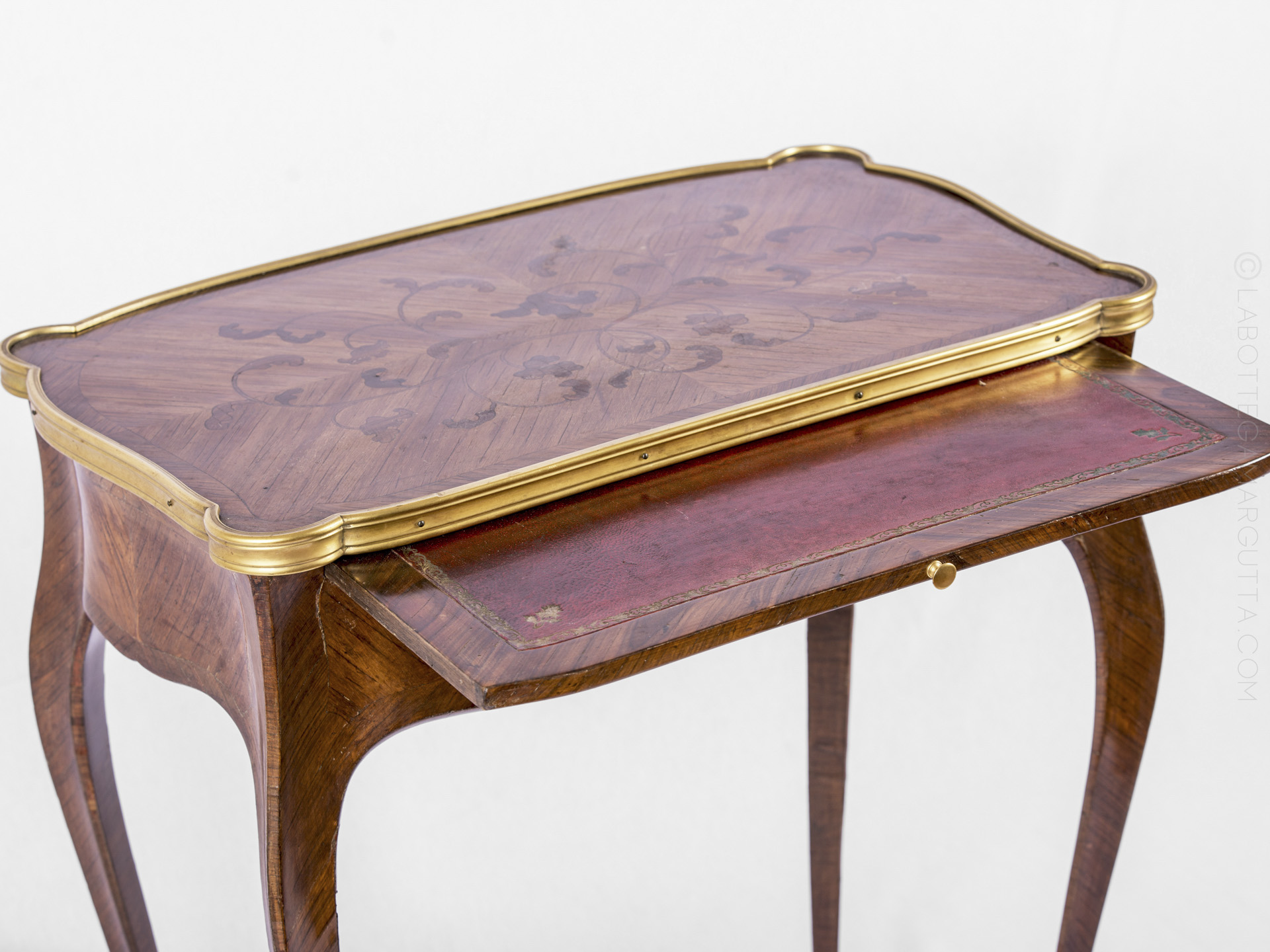 Tavolino-scrittoio in bois de rose intarsiato, con bronzi dorati. Francia inizi ‘800