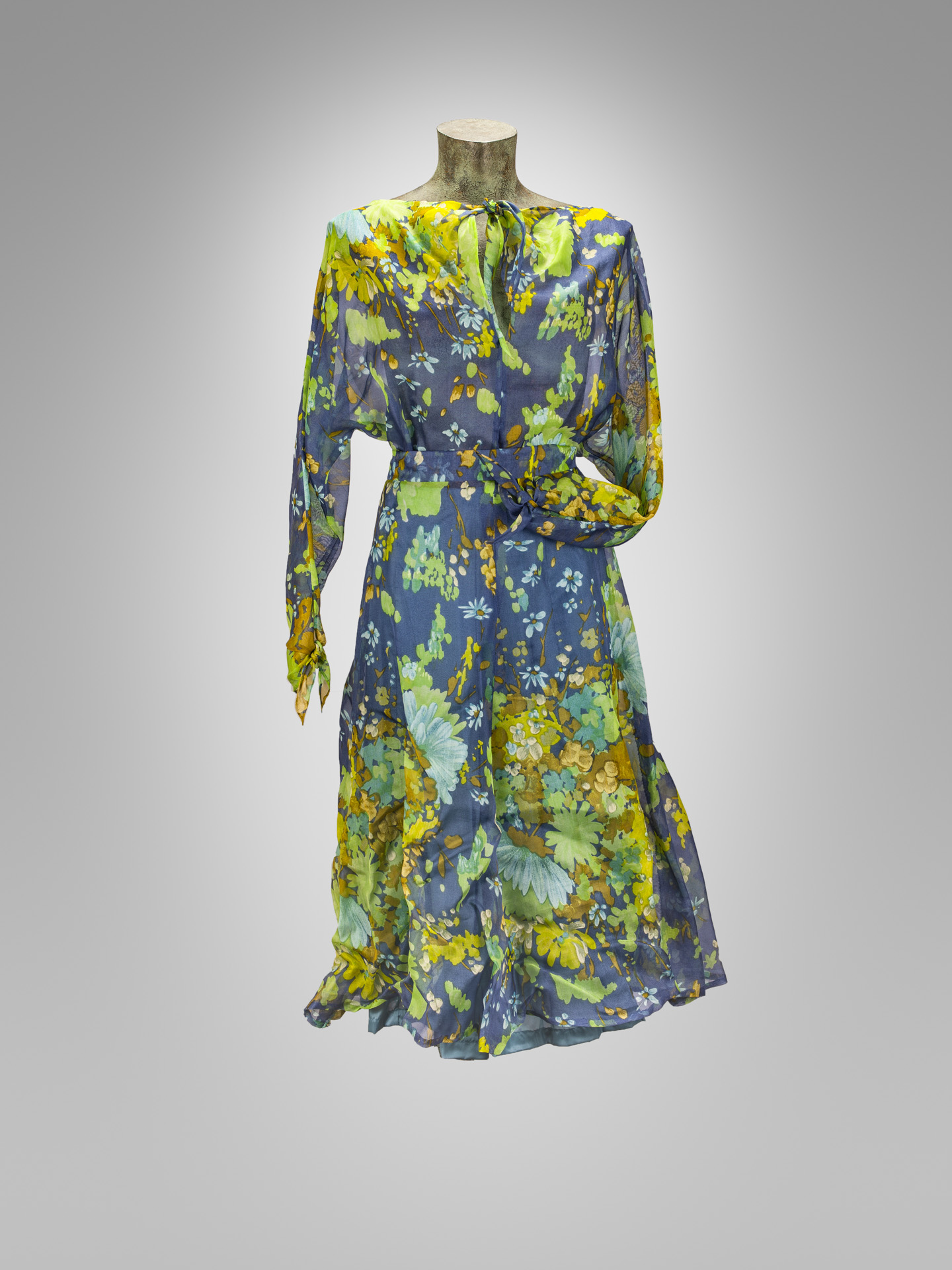 Vestito in organza e pizzo a fiori. Manifattura italiana, Anni ’70