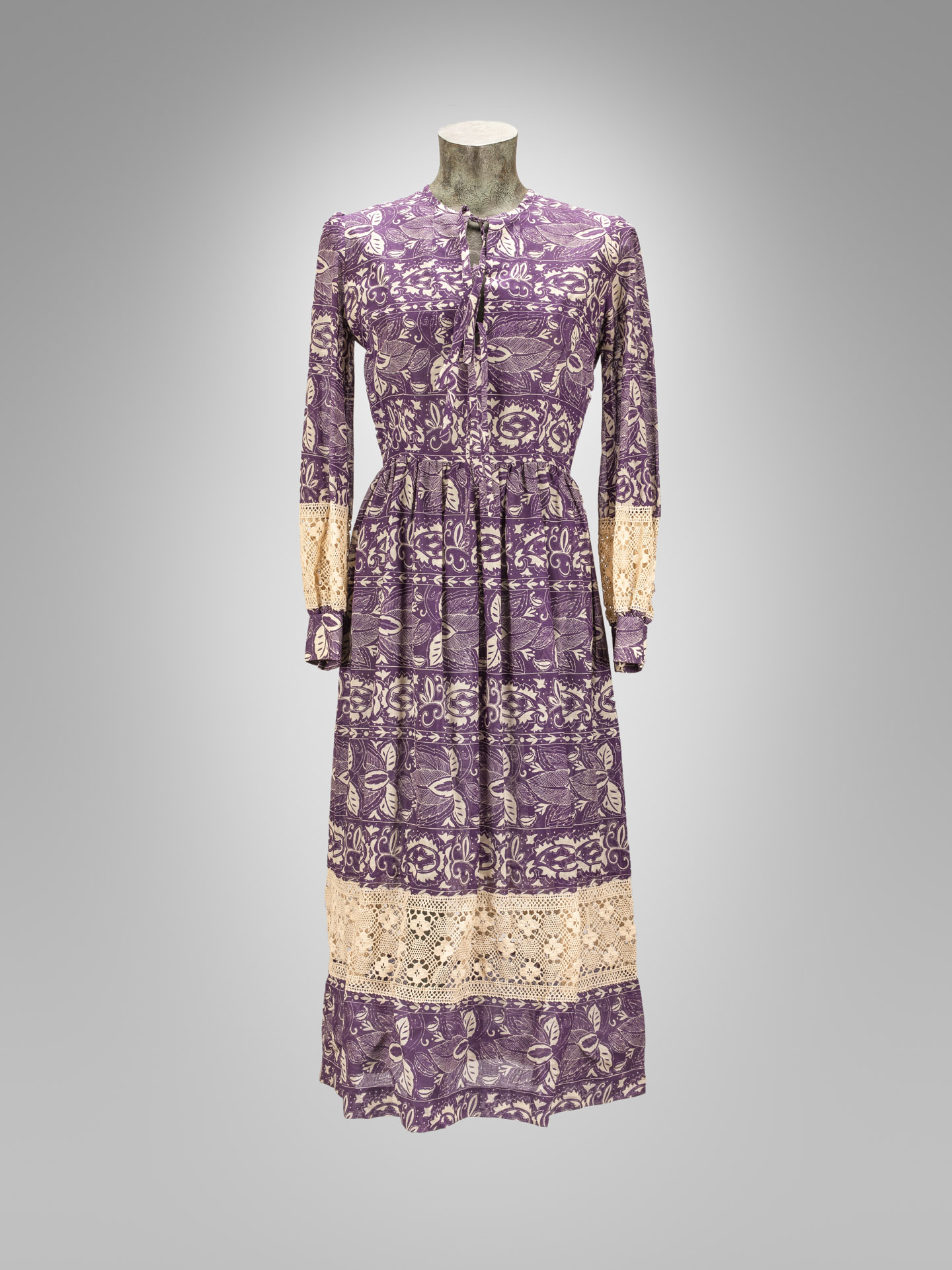 Vestito in organza e pizzo macramè. Wallis fashion shop, Londra, Anni ’70